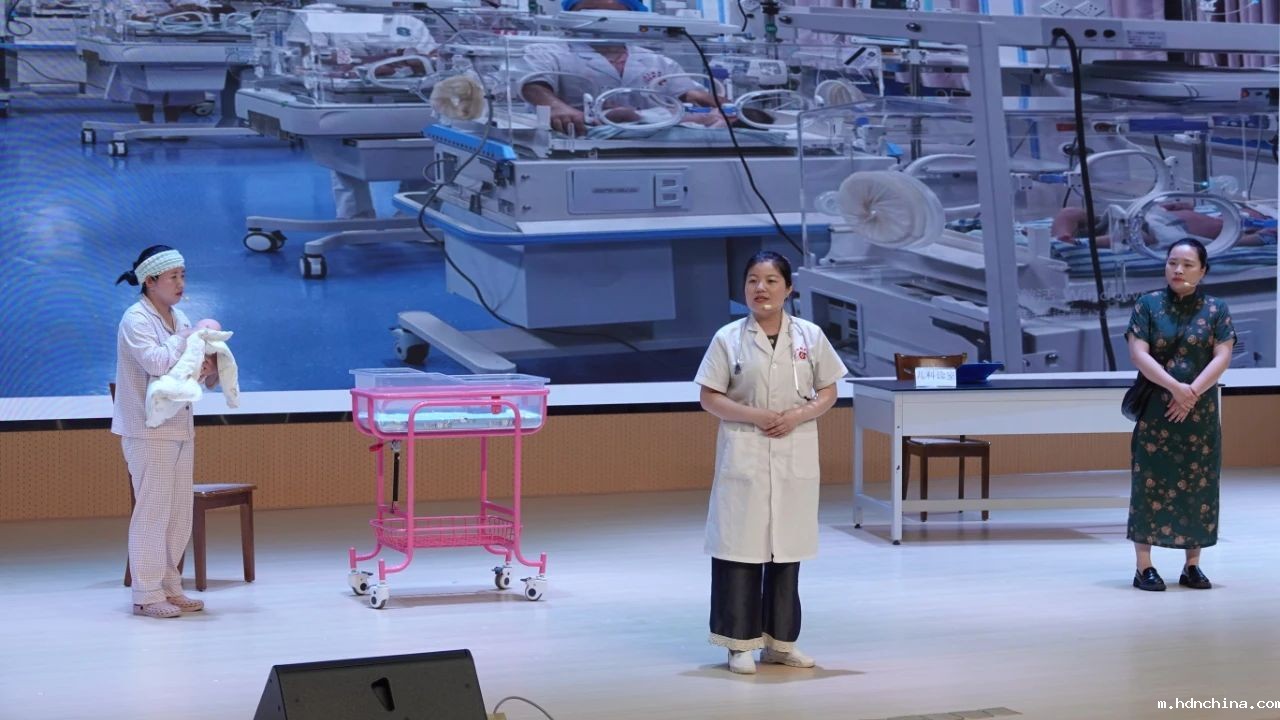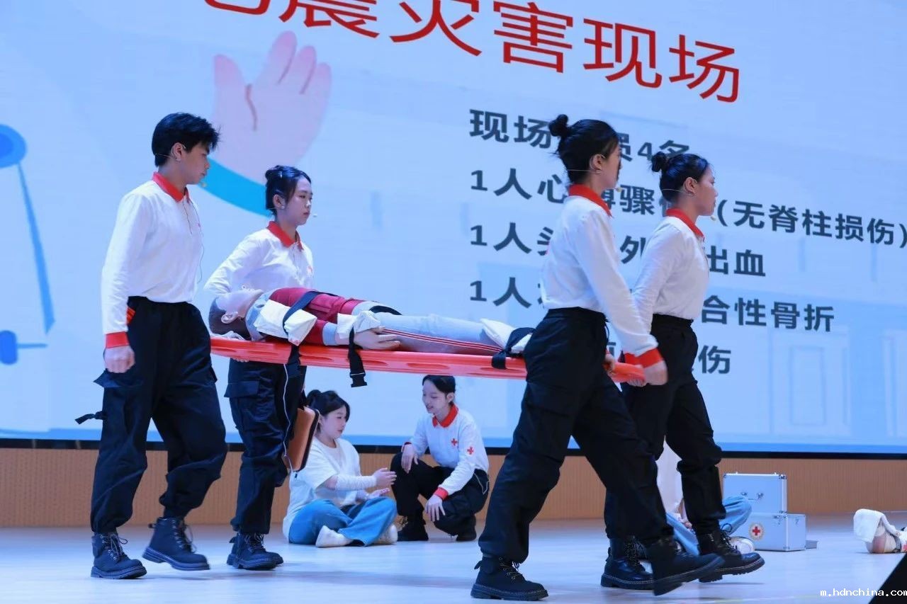 庆祝活动中,护理师生进行了一系列技能与艺术交融的风采展示,既有护理学生现场演示红十字应急救护技能、无菌技术操作、护理礼仪,动作精准规范,展现学生扎实功底和专业素养。也有护理师生诗歌朗诵《生命之光》、舞蹈表演《遗韵》、情景剧《新生儿黄疸科普》等文艺表演,以艺术形式礼赞护理精神,引发全场共鸣。