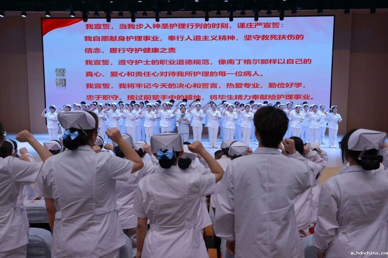 薪火相传,护理教师为学子戴上象征责任与使命的燕尾帽。全体护生手捧蜡烛,庄严宣誓:“我志愿献身护理事业,热爱护理专业……”誓言铿锵,传递着对生命的敬畏与守护的初心。